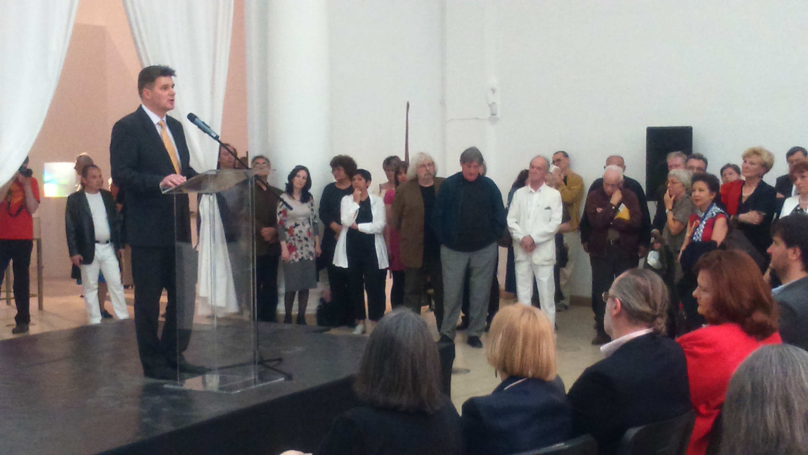 Köszöntőt mondott: Kákóczki András a Miskolci Galéria vezetője, és Urbán Tibor képzőművész a kiállítás alapító kurátora